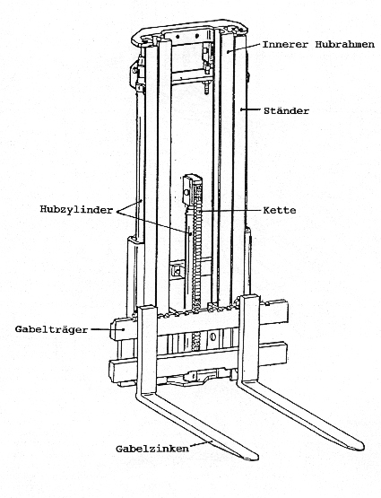 Das Hubgerüst ist ein wesentlicher Bestandteil von Flurförderzeugen mit einer Hochhubeinrichtung. Es dient zum Transport der Last in vertikaler Richtung.