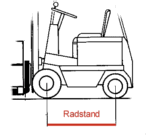 RadstandDer Radstand bezeichnet den Abstand zwischen der Vorder- und der Hinterachse eines Flurförderzeuges. Die Länge des Radstandes hat Auswirkungen auf die Einsatzeignung des Fahrzeuges: - geringeres Gegengewicht erforderlich - kleineres Gesamtgewicht